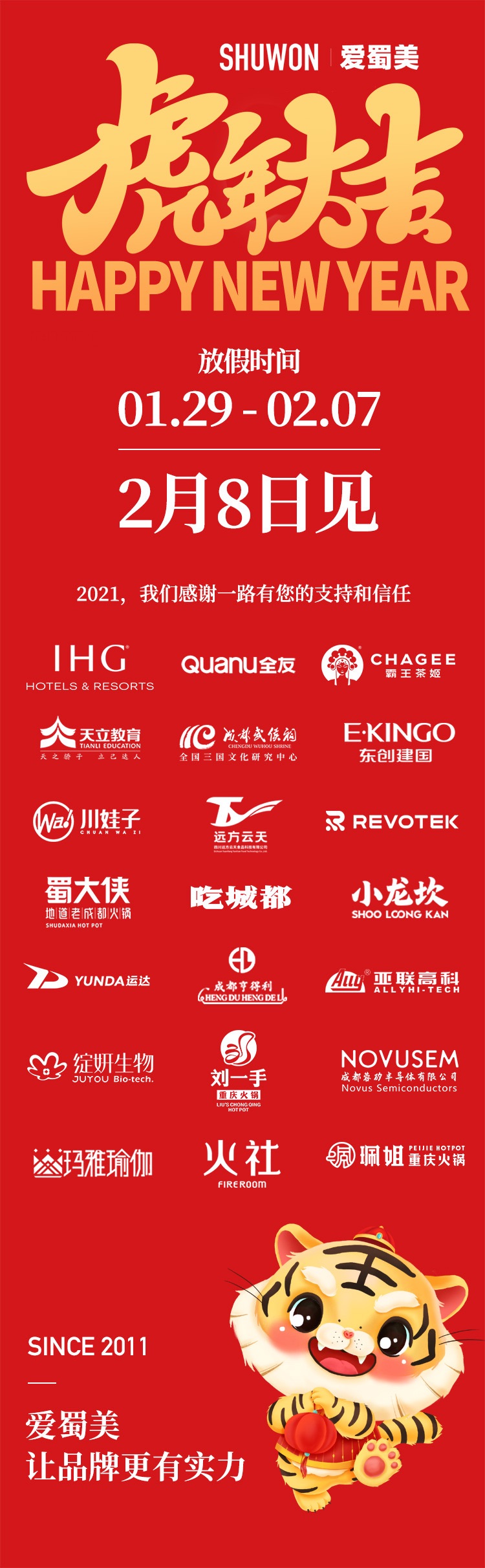 感謝所有客戶對于愛蜀美的支持,祝愿所有人2022年如虎添翼萬事圓。